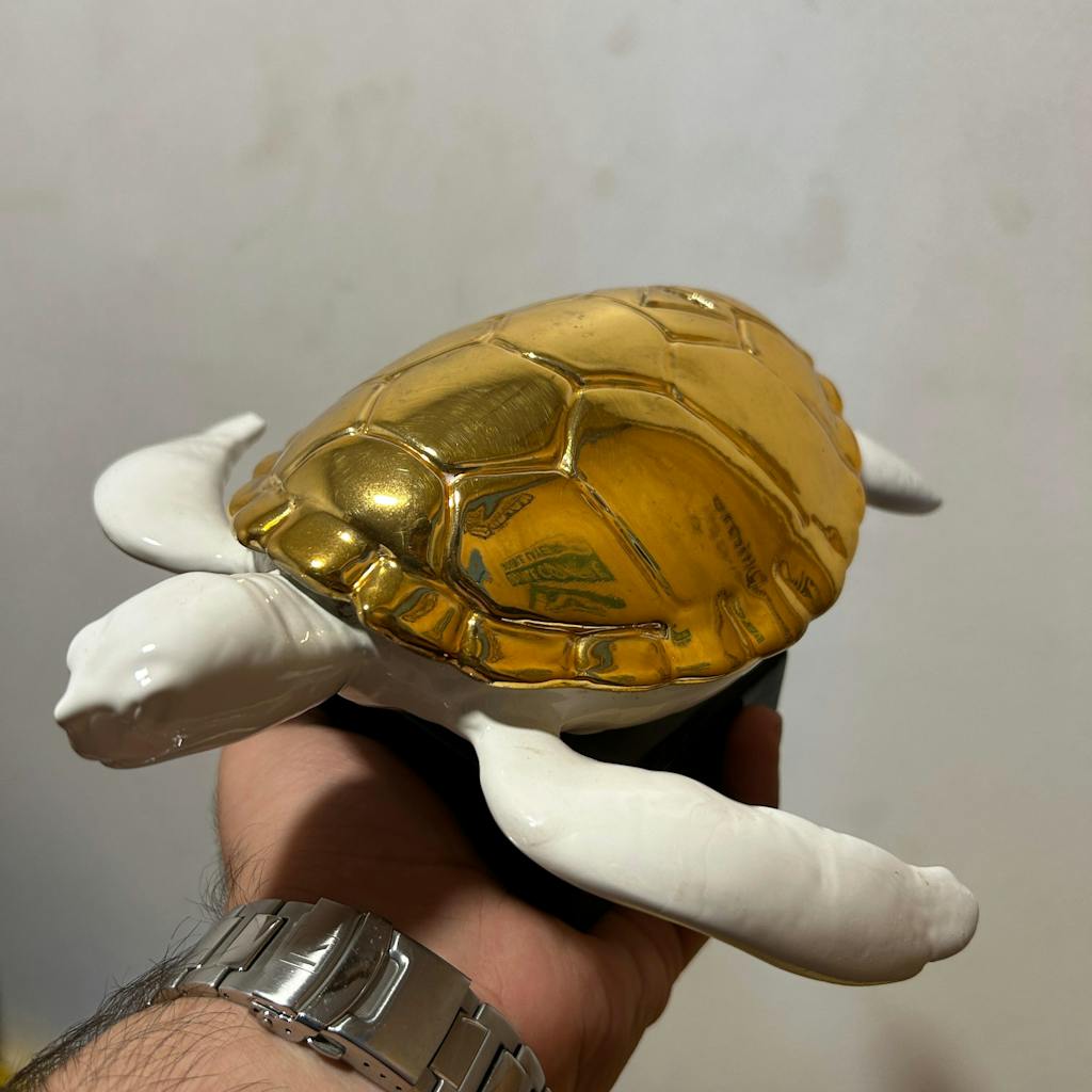The turtle, featured in this sculpture, holds a deep symbolic significance in Indian culture, representing longevity, stability, and the endurance of life. In Hindu mythology, the turtle (or Kurma) is the second incarnation of the god Vishnu, who took the form of a turtle to support Mount Mandara during the...