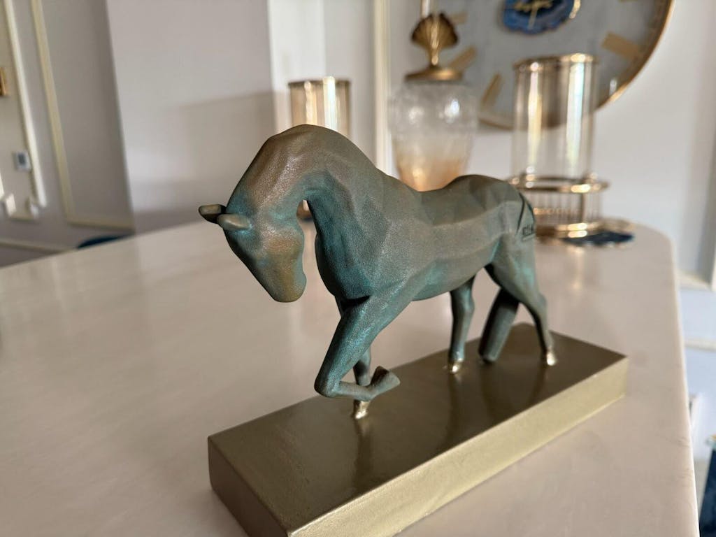 This horse sculpture, with its triangular mesh design, embodies the balance between grounded strength and the aspiration for freedom. This piece captures both the power and grace of the horse, illustrating a moment of pause in a journey—between standing firm and stepping forward—inviting reflection on the tension between stability and...